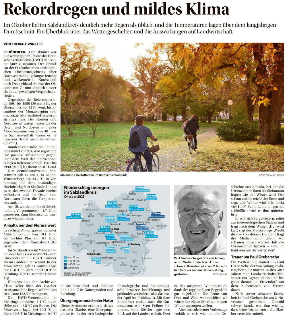 | Klimatyp: | Binnentieflandklima, im Übergangsbereich zwischen subatlantischem Klima Westeuropas und osteuropäischem Kontinentalklima, beeinflußt durchLage im Regenschatten des Harzes. |