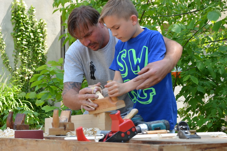 Hobeln will gelernt sein. Es ist schwieriger und auch anstrengender als gedacht, den Hobel so zu führen, dass ein gleichmäßiger Span entsteht. So gibt es erst einmal Hilfe bei den ersten Versuchen.