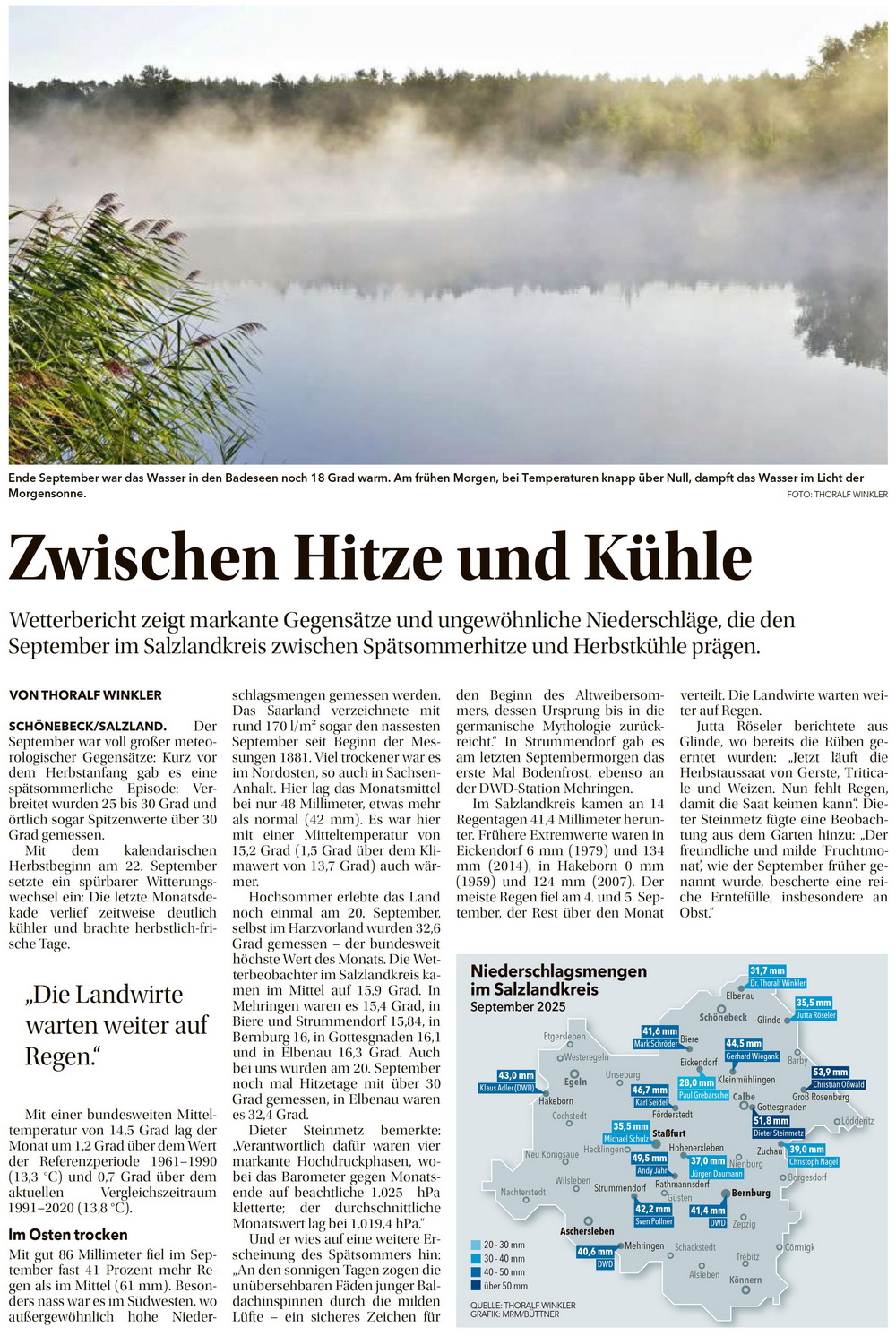 | Klimatyp: | Binnentieflandklima, im Übergangsbereich zwischen subatlantischem Klima Westeuropas und osteuropäischem Kontinentalklima, beeinflußt durchLage im Regenschatten des Harzes. |